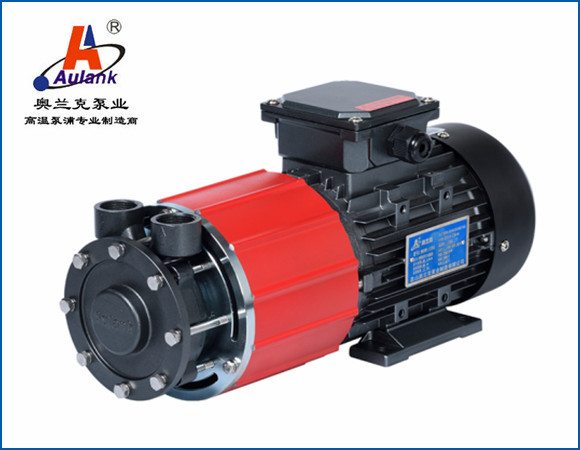 不銹鋼磁力泵采用了電子組件換向,無需使用碳刷換向,采用高性能耐磨陶瓷軸及陶瓷軸套,軸套通過注塑與磁鐵連成整體也就避免了磨損,因此無刷直流磁力式水泵的壽命大大增強了。 ?該款泵浦為磁力驅動式超高溫旋渦泵,移送循環介質為不含顆粒、纖維的液體(水、導熱油、乙二醇)等。泵浦外觀精美、振動小、噪音低、應用于循環 350℃以內高溫導熱油,循環 180℃以內熱水。