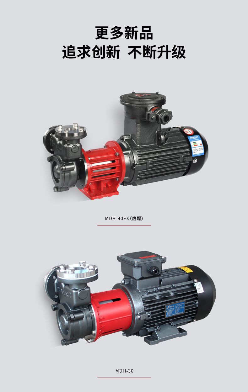 MDH 系列磁力驅(qū)動高低溫旋渦泵,過流部件材質(zhì)為不銹鋼,具備一定的氣液混合功能。產(chǎn)品采用無軸封、磁力